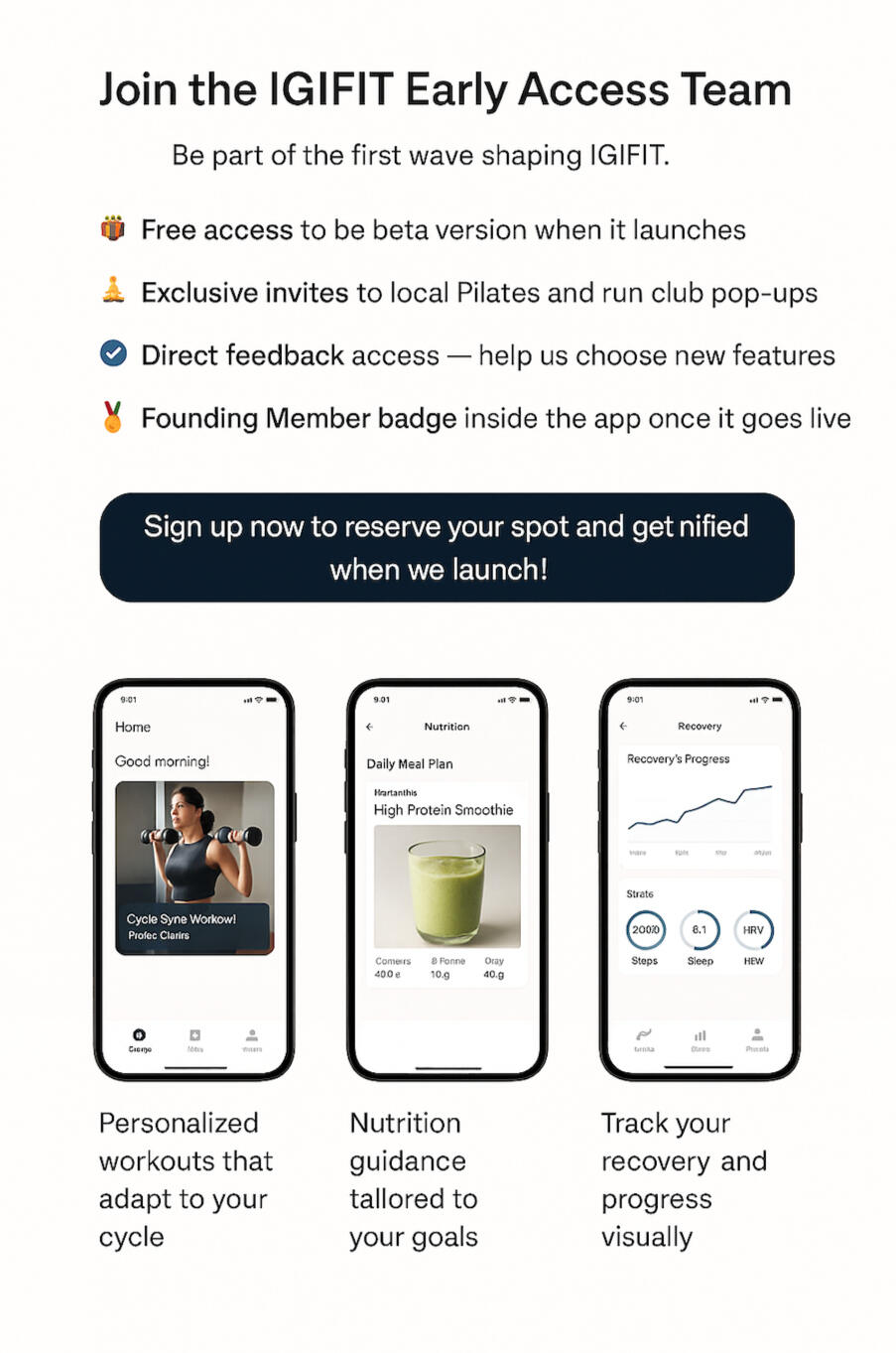 Sign up to get notified about exclusive free Pilates pop-ups, and be the first to demo the IGIFIT app when it launches!